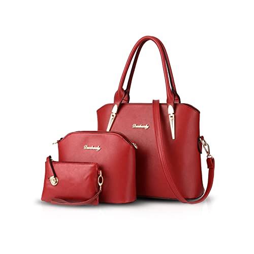Nicole&Doris 新しい ハンドバッグ ファッション ショルダーバッグ 斜めがけバッグ 3ピース handbag PUレザー レッドで、