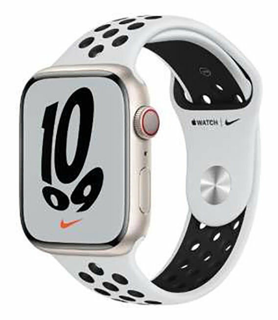 【中古】【安心保証】 Series7[45mm セルラー]アルミニウム スターライト AppleWatch Nike MKL43Jで、