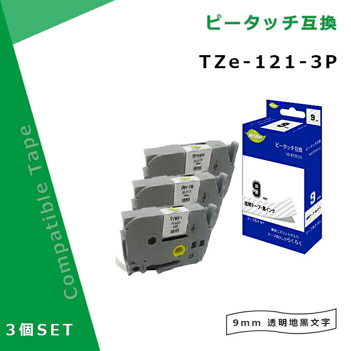商品説明 対応メーカー ブラザー用ピータッチ セット内容 TZe121×3個 ラベル色 透明テープに黒文字 サイズ 幅(9mm) 長さ8m 対応機種 Brother P-touch / PT-P300BT / PT-J100W / J100 / PT-18N / P750W / PT-P750W / P700 / PT-P700 / PT-P900W / PT-2730 / PT-12 / PT-