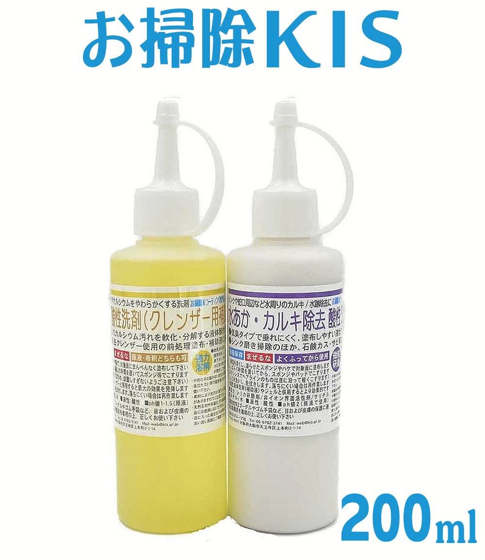 水垢落とし 水垢取り 水垢洗剤 鏡 ウロコ シンク 浴室 お風呂 浴槽 洗剤 キッチン 蛇口 ガラス 洗面ボウル 車 強力 水アカ取り【超微粒子配合 業務用水垢除去酸性クレンザー+液体強力酸性洗剤(補助液)200gセット】