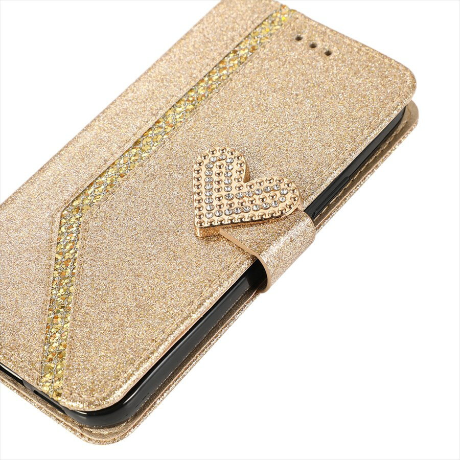 iPhone12 ProMax ケース カバー 手帳型 カバー キラキラ ラメ ハート ラインストーン かわいい 輝き グリッター ゴージャス カード収納 カードポケット スタンド機能