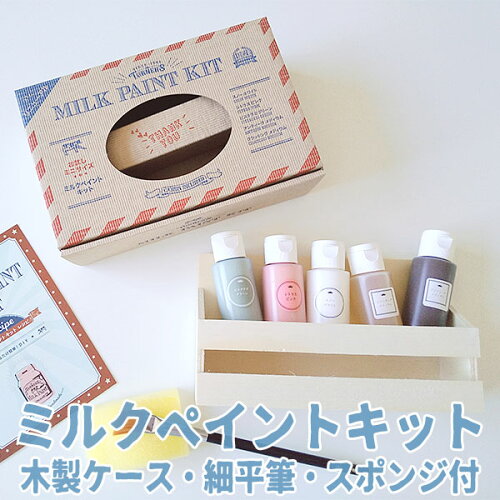 【在庫あり】ターナー色彩 ミルクペイントキット【シトラスピンク・ピスタチオグリーン・スノーホワイト 各30mL】【クラッキングメディウム・アンティークメディウム 各30mL】 木製ケース・細平筆・スポンジ付き 水性塗料 プチDIY お試しセット【K.リニューアル】
