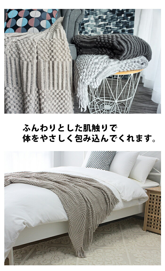 フリンジ付き毛布 のオススメPOINT ■おしゃれな大判ブランケット ワッフルのようなふわふわとした織地、サイドにフリンジ付きのかっこいいブランケットは、おしゃれなカバーリングです。